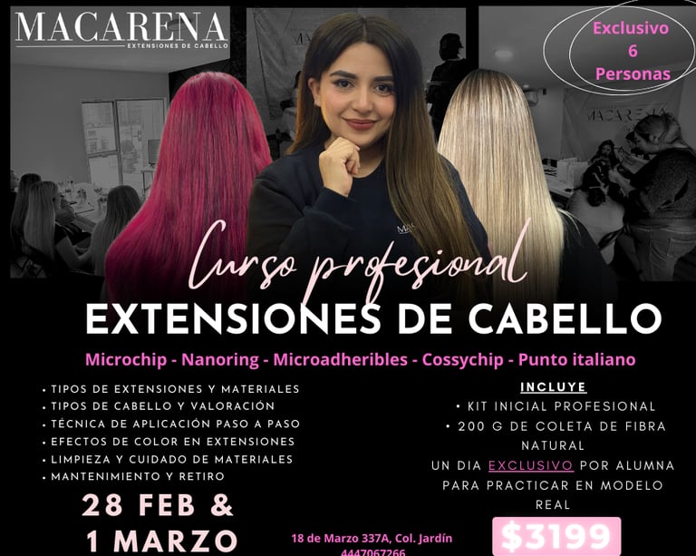 Nuestros cursos están diseñados para quienes desean aprender o perfeccionar técnicas profesionales en la aplicación de extensiones de cabello, combinando teoría clara y práctica real.